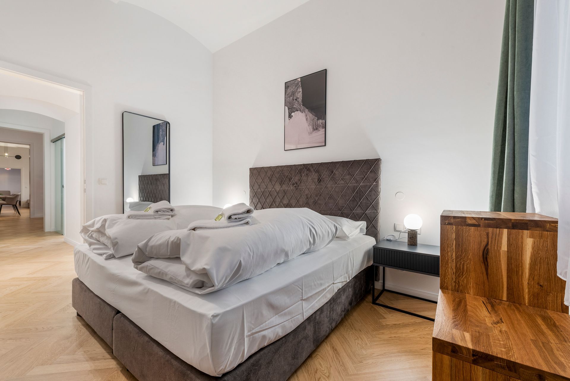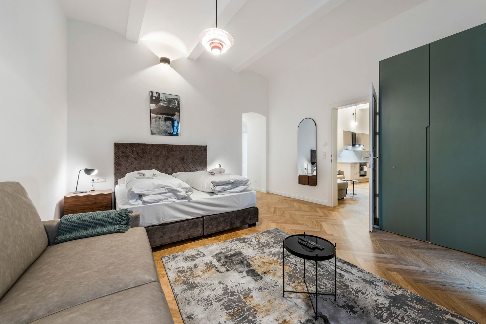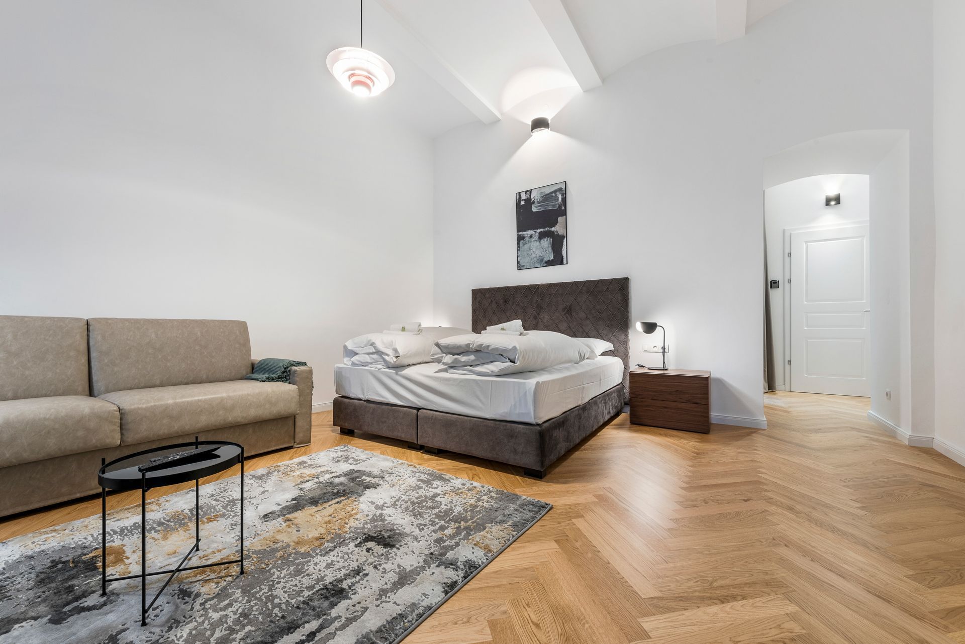 Dieses wunderschöne modern und luxuriös eingerichtete Apartment bietet Platz für bis zu vier Personen. Ein grosses Doppelbett in einem abgetrennten Bereich und ein bequemes Schlafsofa im Wohnzimmer sorgen für hohen Schlafkomfort.